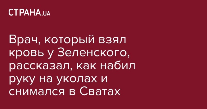 Врач, который взял кровь у Зеленского, рассказал, как набил руку на уколах и снимался в Сватах