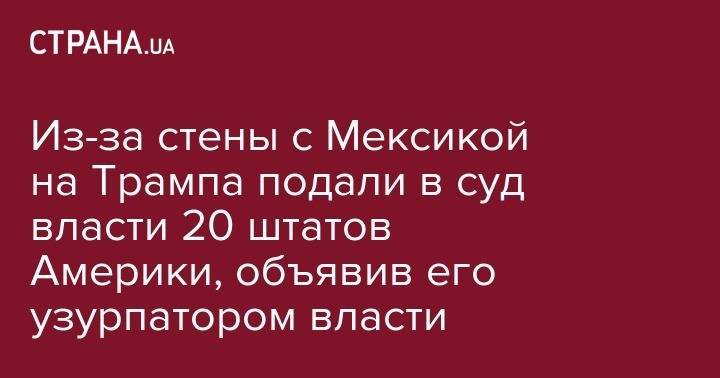Палата представителей США и власти 20 штатов подали иск в суд округа Колумбия против президента страны Дональда Трампа за получение финансирования на строительство стены на южной границе путем введения чрезвычайного положения в обход Конгресса. Об этом сообщает спикер нижней палаты Конгресса США Нэнси Пелоси.