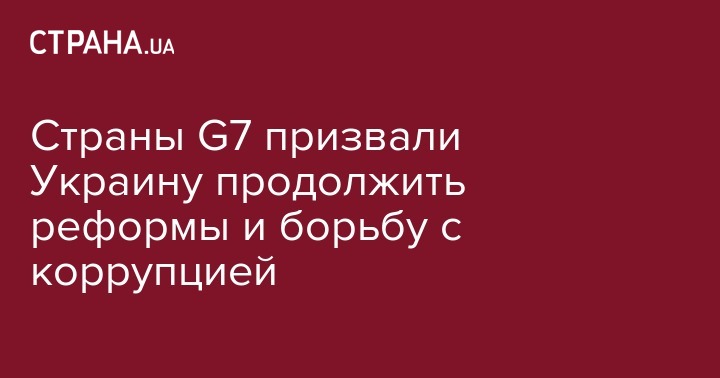 Также Большая семерка призвала украинские власти выполнить свои обязательства в области борьбы с коррупцией, укрепления верховенства закона, защиты свободы СМИ и гражданского общества.