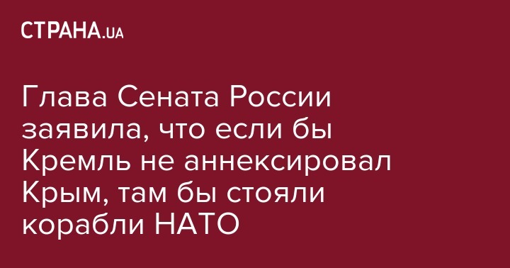 Глава Сената России заявила, что если бы Кремль не аннексировал Крым, там бы стояли корабли НАТО