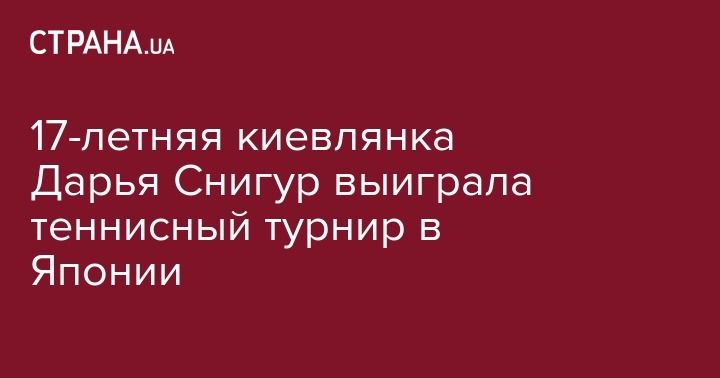 Теннисный турнир (ITF) в японской Касиве выиграла 17-летняя киевлянка Дарья Снигур. Призовой фонд соревнований составил $25 тысяч. В финальном матче в двух сетах наша спортсменка переиграла четвертую "ракетку" соревнований Ребекку Марино из Канады - 6:4, 6:2, сообщает БТУ.