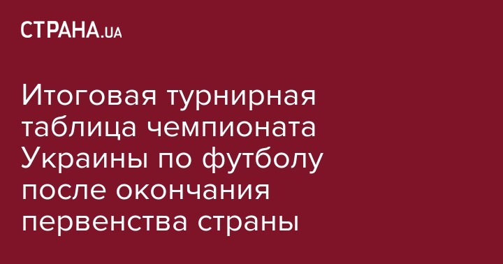 Итоговая турнирная таблица чемпионата Украины по футболу после окончания первенства страны