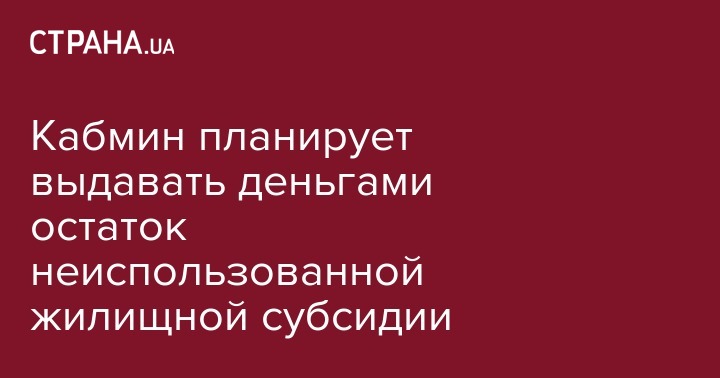 Кабинет министров монетизирует систему жилищных субсидий. В частности, предлагается перевести в денежные выплаты неиспользованный потребителем остаток жилищной субсидии в конце отопсезона 2016-2017 годов. Об этом сообщает "Интерфакс-Украина"