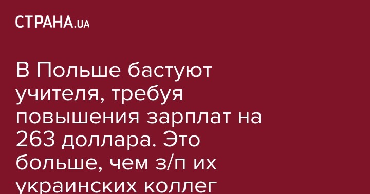 Любопытно, что средняя зарплата учителей в Украине составляет примерно ту сумму, на какую их польские коллеги требуют повысить себе зарплату - 7 тысяч гривен. По состоянию на сегодня это 262 доллара.