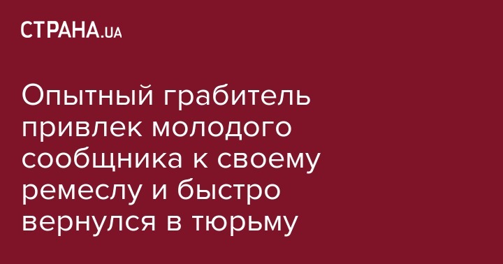 Опытный грабитель привлек молодого сообщника к своему ремеслу и быстро вернулся в тюрьму