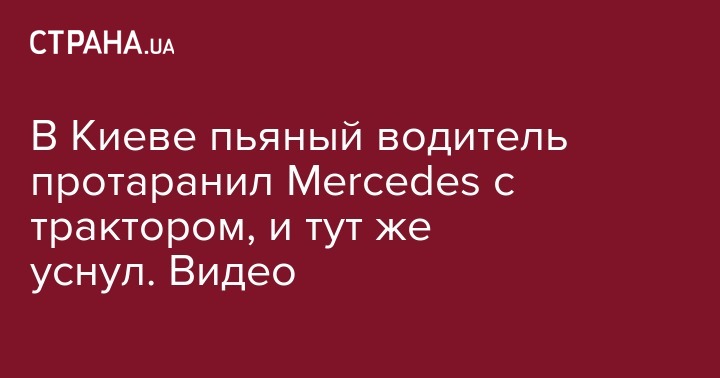 В Киеве пьяный водитель протаранил Mercedes с трактором, и тут же уснул. Видео