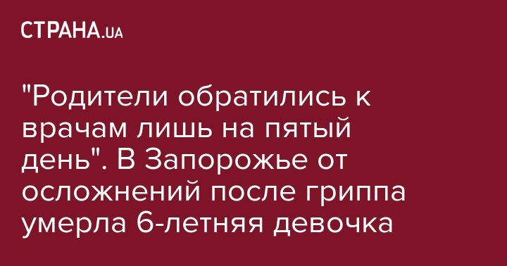 "Родители обратились к врачам лишь на пятый день". В Запорожье от осложнений после гриппа умерла 6-летняя девочка
