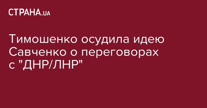 Председатель фракции ВО "Батькивщина" Юлия Тимошенко выступила против идеи коллеги по фракции Надежды Савченко договориться с главарями самопровозглашенных ДНР/ЛНР. Об этом сообщают "Украинские Новости".