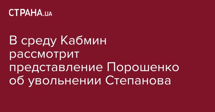 Премьер-министр Владимир Гройсман сообщил, что получил представление об увольнении Максима Степанова с должности главы Одесской облгосадминистрации от президента Петра Порошенко. Уже в среду, 10 апреля, обращение будет рассмотрено в Кабмине. Об этом сообщает "Интерфакс-Украина"