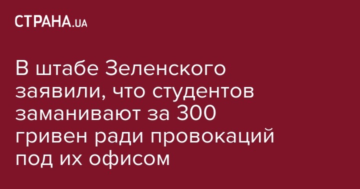 "Сегодня под одним из Зе! Офисов планируются провокации. По высшим учебным заведениям Киева активно набирают студентов для участия в сомнительной акции и предлагают за это деньги. Ситуация в стране сложилась такая, что студентам надо искать любые возможности, чтобы дополнительно заработать деньги на жизнь", - отмечается в опубликованном сообщении.