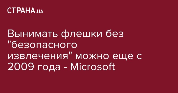 В компании Microsoft подтвердили, что пользователи могут вынимать флешки из USB-разъемов устройств на операционных системах Windows 7 и Windows 10 без включения функции "безопасное извлечение".