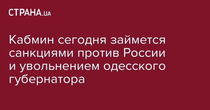 В среду, 10 апреля, Кабинет министров во время заседания рассмотрит вопрос расширения торговых санкций против России и проблемой с увольнением одесского губернатора Максима Степанова. Об этом сообщается в программе заседания правительства, опубликованной на правительственном портале.