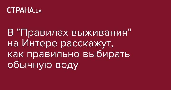 В среду, 10 апреля, в 14:45 на канале "Интере" в эфир выйдет очередной выпуск ток-шоу о качестве жизни "Правила выживания". В этой программе зрители узнают, как среди множества предложений выбрать качественную и безопасную питьевую воду, на что обращать внимание при покупке и как защищать свои права, если вы стали жертвой обмана.