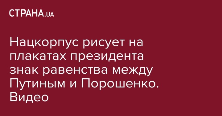 Представители Нацкорпуса запустили интернет-флешмоб, в котором пририсовывают знак равенства на политических плакатах с изображением президента Петра Порошенко и президента РФ Владимира Путина. Об этом стало известно из видео, опубликованного на YouTube-канале Национального корпуса.