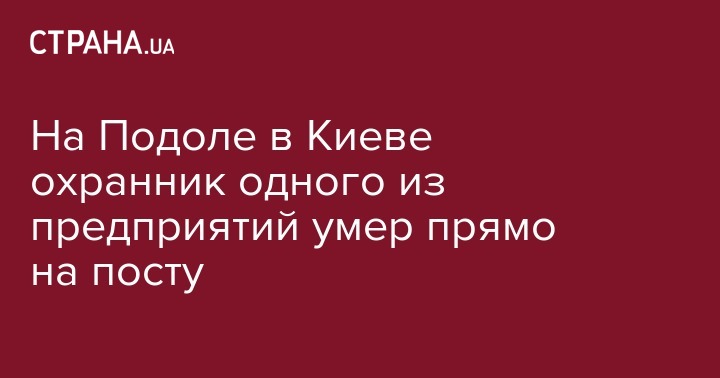 Вечером в среду, 10 апреля, на Подоле в Киеве прямо на рабочем месте умер охранник одного из предприятий. Об этом сообщает "Информатор"