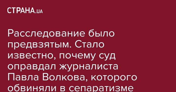 Суду не было предоставлено сведений, на основании которых заявлений, материалов правоохранительных или контролирующих государственных органов, было принято решение о начале досудебного расследования, а также, почему следователи считали Волкова причастным к преступной деятельности. Суд решил, что доказательствами не подтверждено, что Комитет социальных коммуникаций при народном совете ДНР существовал в данный период и обвиняемый обращался туда и между ними было сотрудничество. Эксперт сделал вывод, что журналист Волков не утверждает, что территория полуострова Крым сегодня является частью Российской Федерации, а только отметил, что такие сведения есть в тексте Конституции РФ и констатировал то, что произошло. Суд пришел к выводу, что расследование проводилось с нарушениями и было предвзятым.