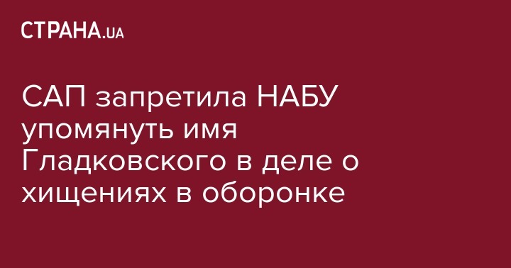 В Специализированной антикоррупционной прокуратуре (САП) запретили Национальному антикоррупционному бюро (НАБУ) упоминать фамилию бывшего первого заместителя секретаря Совета национальной безопасности и обороны Олега Гладковского в материалах по делу о хищениях в оборонке. Об этом сообщила пресс-служба бюро в Facebook.