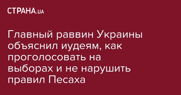 Главный раввин Украины объяснил иудеям, как проголосовать на выборах и не нарушить правил Песаха