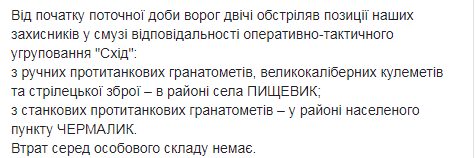 "На все обстрелы противника наши защитники ответили огнем. Потери оккупантов уточняются", - сказано в сообщении.