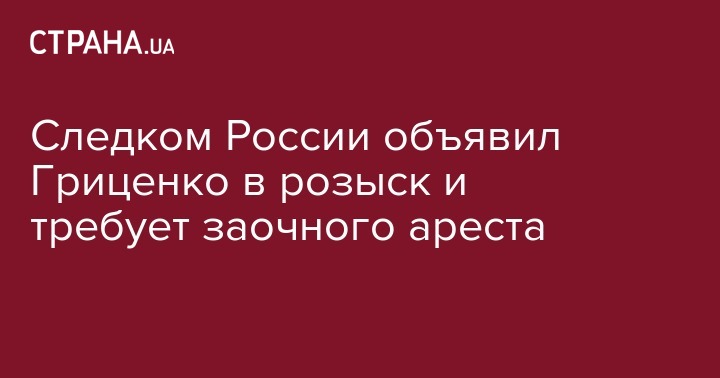 "В Басманный суд Москвы поступило ходатайство следственных органов об избрании в отношении Анатолия Гриценко заочной меры пресечения в виде заключения под стражу. Он объявлен в международный розыск", - сказала представитель суда, не уточнив дату заседания.