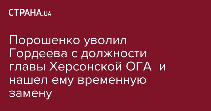 Как сообщалось, 6 апреля исполнительный директор Центра противодействия коррупции (ЦПК) Дарья Каленюк по итогам встречи главы государства с представителями общественных организаций написала на странице в Facebook, что Петр Порошенко в течение 7-8 дней уволит председателя Херсонской облгосадминистрации Андрея Гордеева с занимаемой должности.