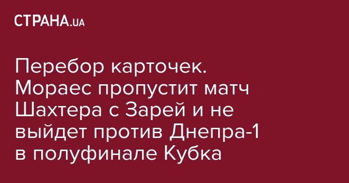 Согласно регламенту, форвард пропустит один матч в том турнире, в котором был наказан. Таким образом, Мораес не сыграет в полуфинальном матче Кубка Украины с Днепром-1.