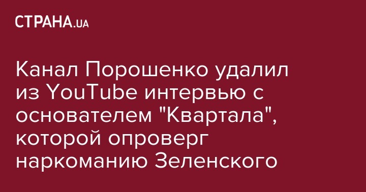 Канал Порошенко удалил из YouTube интервью с основателем "Квартала", которой опроверг наркоманию Зеленского