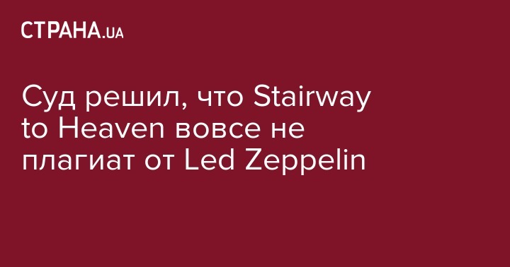 Суд в калифорнийском Лос-Анджелесе вынес вердикт о рок-балладе Stairway to Heaven. Присяжные постановили, что музыкальное вступление к знаменитой композиции музыкантов Led Zeppelin является авторской работой коллектива, т.е. не считается плагиатом.