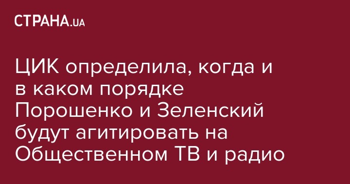 В пятницу, 12 апреля, Центральная избирательная комиссия определила, в какой очередности кандидаты в президенты Петр Порошенко и Владимир Зеленский будут агитировать в эфире Общественного телевидения и Общественного радио за госсредства. Об этом пишет пресс-служба ЦИК.