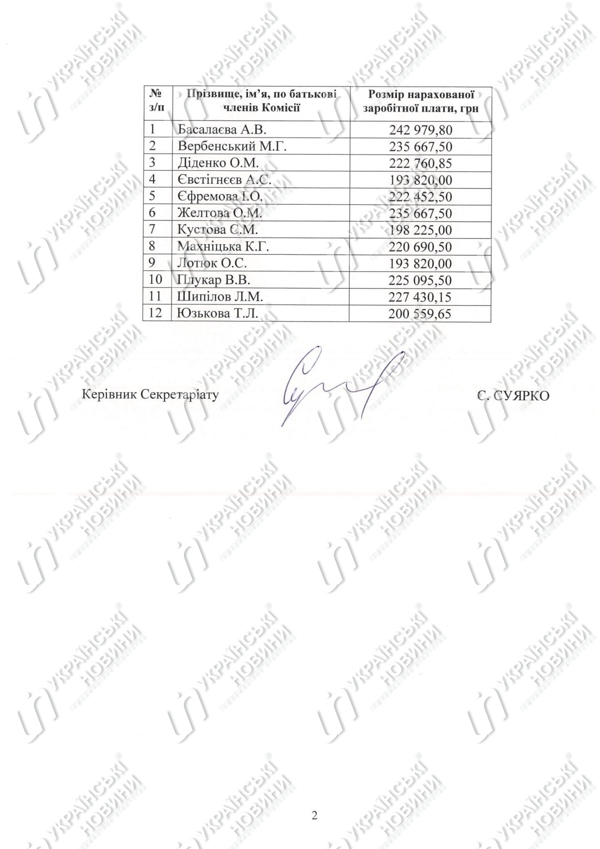 Среди остальных 12 членов ЦИКа зарплата ниже была только у четырех - от 193,8 до 200,6 тысяч гривен.