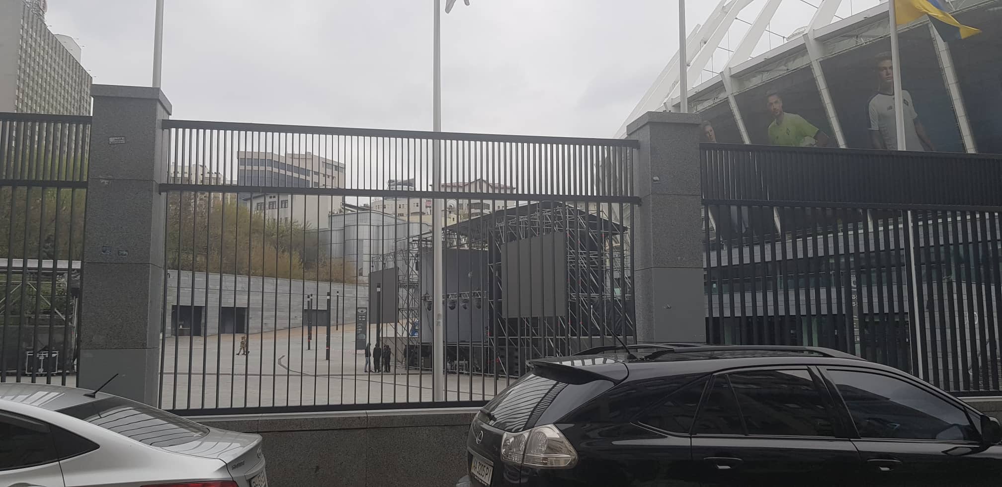 В Киеве возле Олимпийского строят сцену для митинга Порошенко 14 апреля. Фото