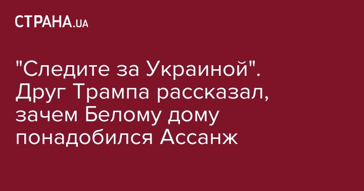 "Может быть, это (экстрадиция Ассанжа в США - ред.) пролило бы свет на заговор с целью проведения расследования в отношении президента Трампа, основанного на ложном обвинении в сговоре с Россией с целью повлиять на выборы 2016 года. Следите за Украиной. Учитывая все имеющиеся в его распоряжении источники, вполне возможно, что он может знать или располагать информацией о том, как все это началось", - сказал соратник Трампа, который является его давним другом.