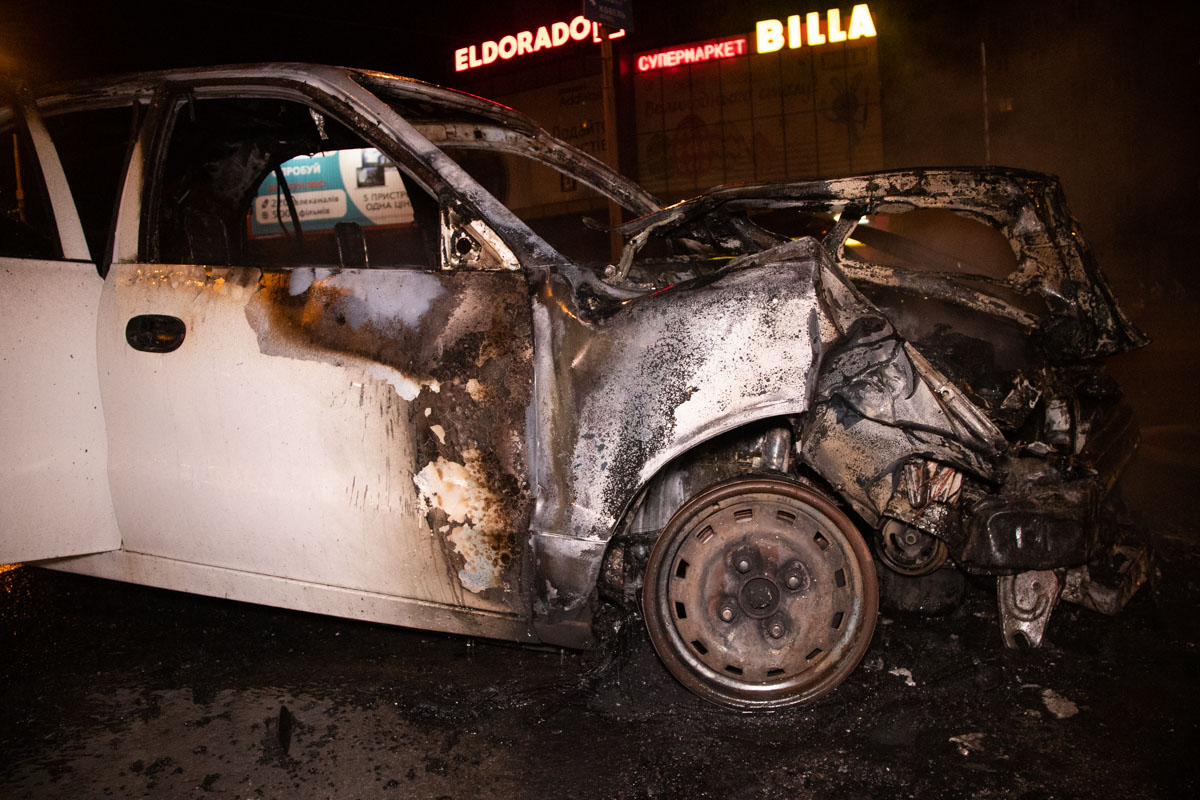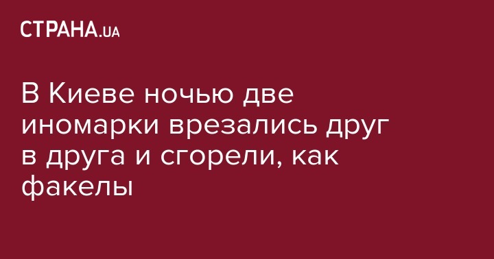 В Киеве ночью две иномарки врезались друг в друга и сгорели, как факелы