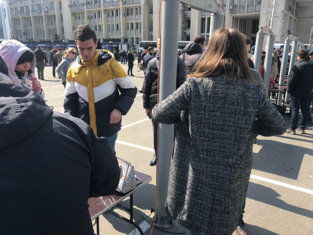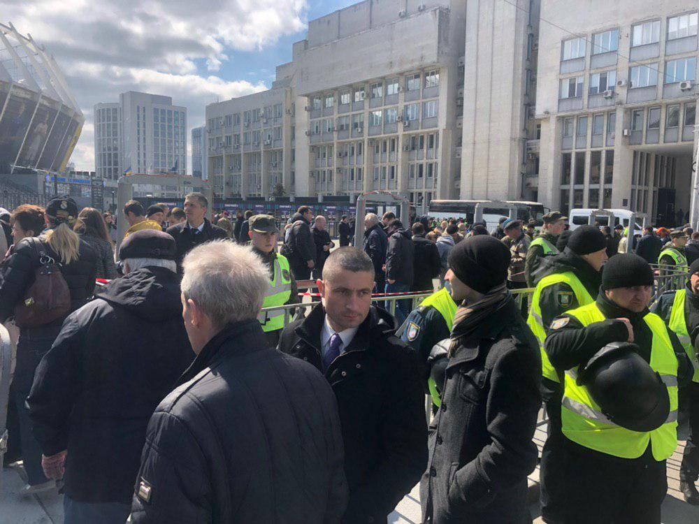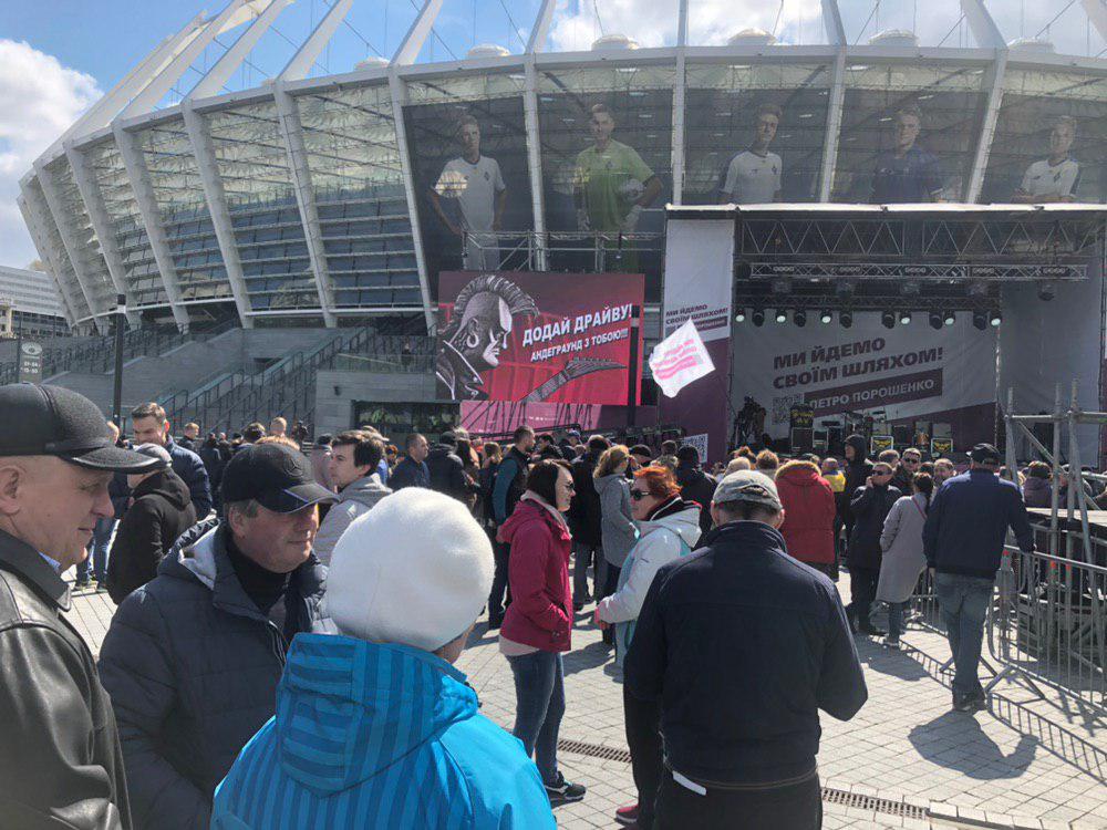 У нее начали собираться первые зрители. У некоторых - агитационная символика Порошенко. Корреспондент "Страны" на месте. Мы ведем прямой репортаж о происходящем. А пока несколько фотографий.
