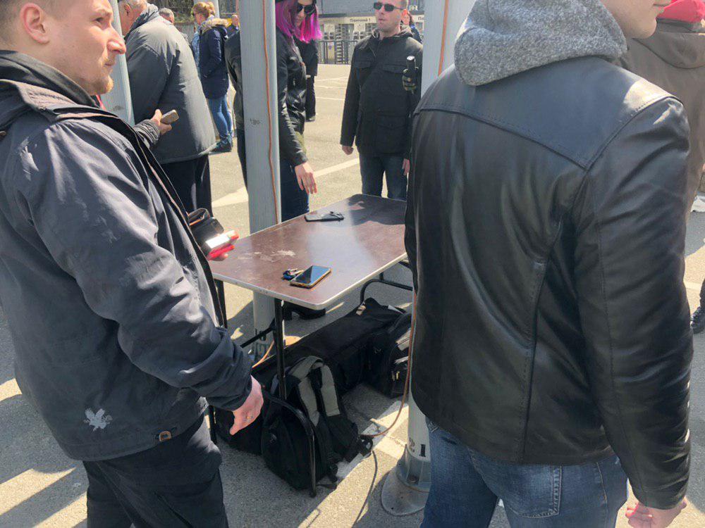 Ориентировочно Порошенко появится в 14:14. У входа на стадион собрали импровизированную сцену, на которой начали выступать музыканты.