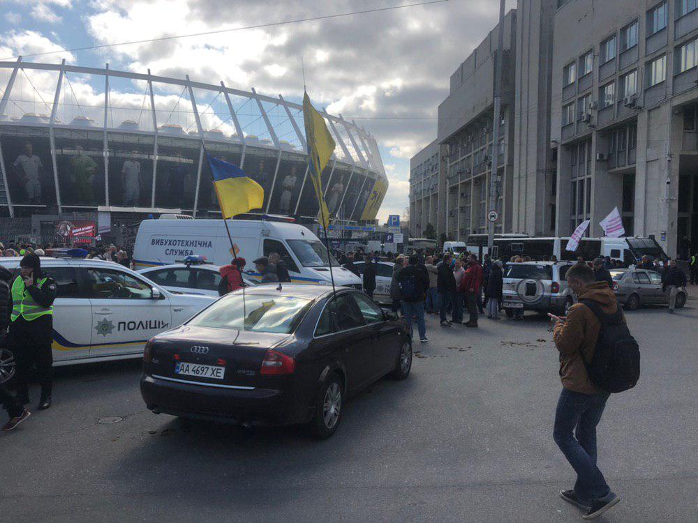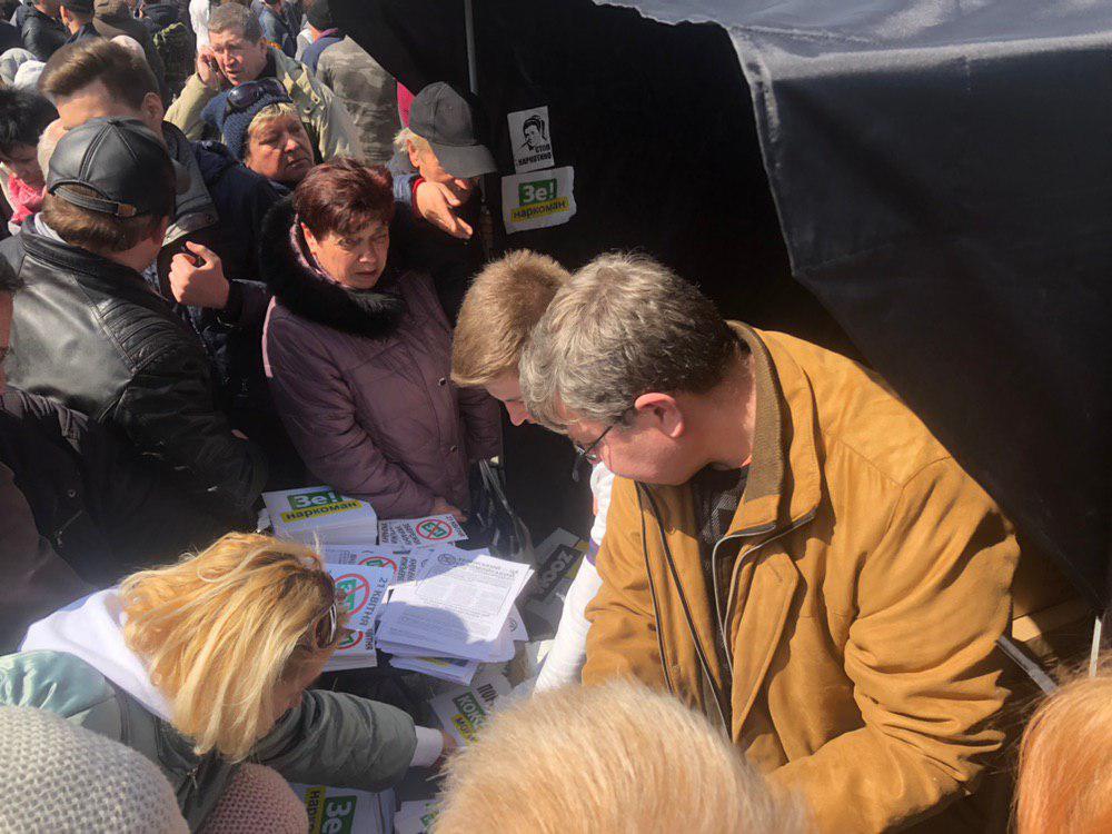 Рядом со входом - черная палатка с агитацией. Но не за Порошенко, а против Зеленского.