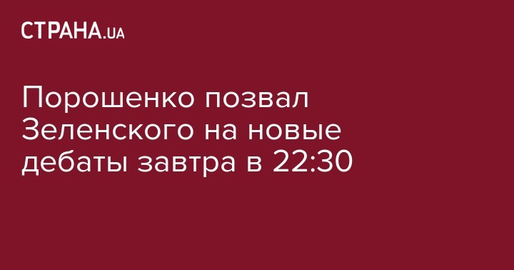 Как сообщала "Страна", Порошенко поставил новое условие по дебатам 19 апреля. Он согласен выступить на стадионе только если время дебатов не будет совпадать с эфиром на телеканале "Суспільне".