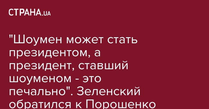 "Хочу обратиться к человеку, который занимает очень серьезный пост - пост президента Украины. Господин Порошенко, я очень хочу, чтобы вы перешли от "Я услышал" до "Я сделаю". А именно: посадили убийц Екатерины Гандзюк, посадили Свинарчуков и вспомнили про то, что вы забыли о наших пленных украинских моряках, которые сейчас сидят за решеткой и ждут пока вы набегаетесь по телеканалам  (намек, что Порошенко пригласил Зеленского в студию ICTV в понедельник вечером - прим. ред.) в поисках Зеленского (здесь , насдаетесь анализов - всех. И накричитесь на стадионе. Пожалуйста, сделайте это. Это ваши дела. Потому что шоумен может стать президентом, а президент, который стал шоуменом, это печально. Дебаты - 19-го. Дела - каждый день!", - сообщил Владимир Зеленский.