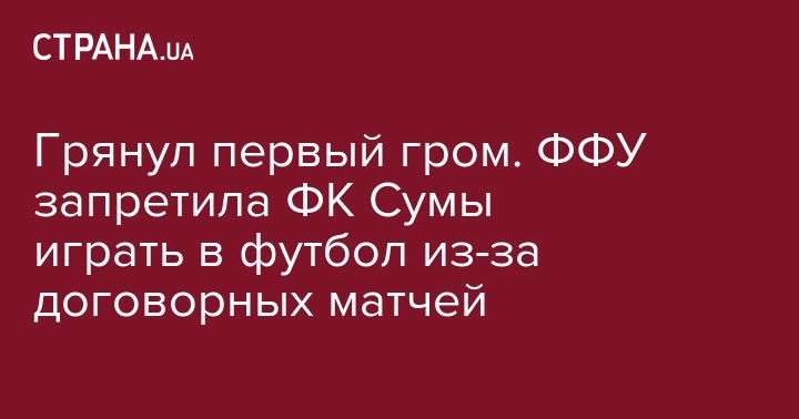 Грянул первый гром. ФФУ запретила ФК Сумы играть в футбол из-за договорных матчей