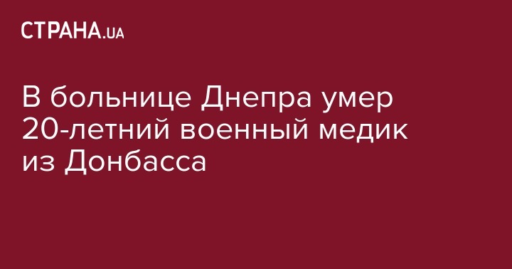 В больнице Днепра умер 20-летний военный медик из Донбасса