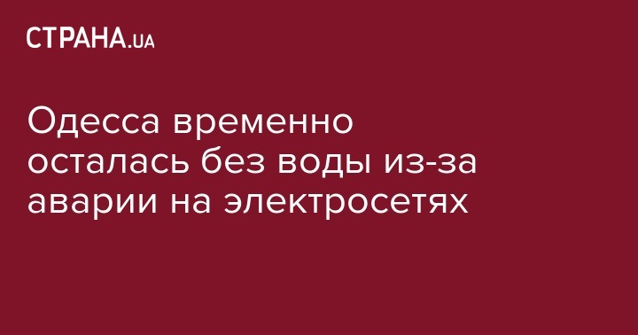 В Одессе из-за аварии в электросетях обесточена главная канализационно-насосная станция и снижена подача воды во всех районах города. Об этом в понедельник, 15 апреля, информирует официальный сайт города Одессы.