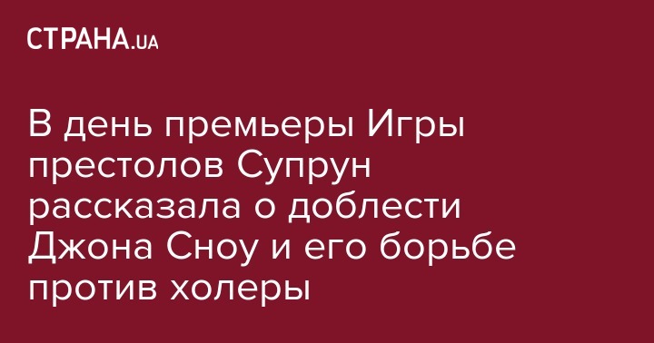 В день премьеры Игры престолов Супрун рассказала о доблести Джона Сноу и его борьбе против холеры