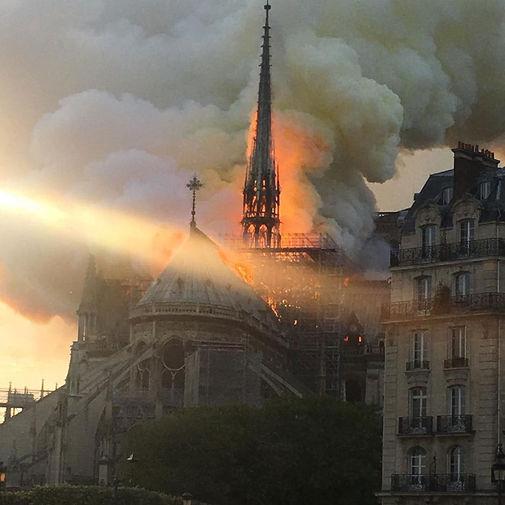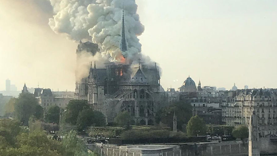 Во время пожара в Соборе Парижской богоматери (Нотр-Дам-де-Пари) обрушился шпиль.