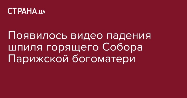 В распоряжении "Страны" появилась видеозапись момента обрушения шпиля на здании горящего Собора Парижской богоматери во Франции.