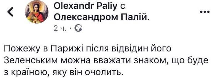 По мнению Александра Палия, пожар в Париже после его посещения Зеленским можно считать знаком – что будет со страной, которую он возглавит.