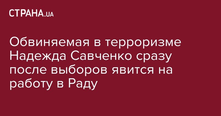 Депутат Верховной Рады Надежда Савченко (внефракционная), которая накануне была освобождена из-под ареста, планирует выйти на работу в парламент во вторник, 23 апреля, сразу после выборов.