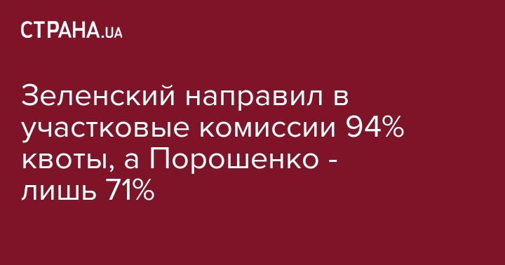 Зеленский направил в участковые комиссии 94% квоты, а Порошенко - лишь 71%
