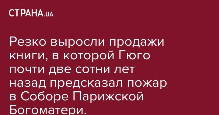 Резко выросли продажи книги, в которой Гюго почти две сотни лет назад предсказал пожар в Соборе Парижской Богоматери.