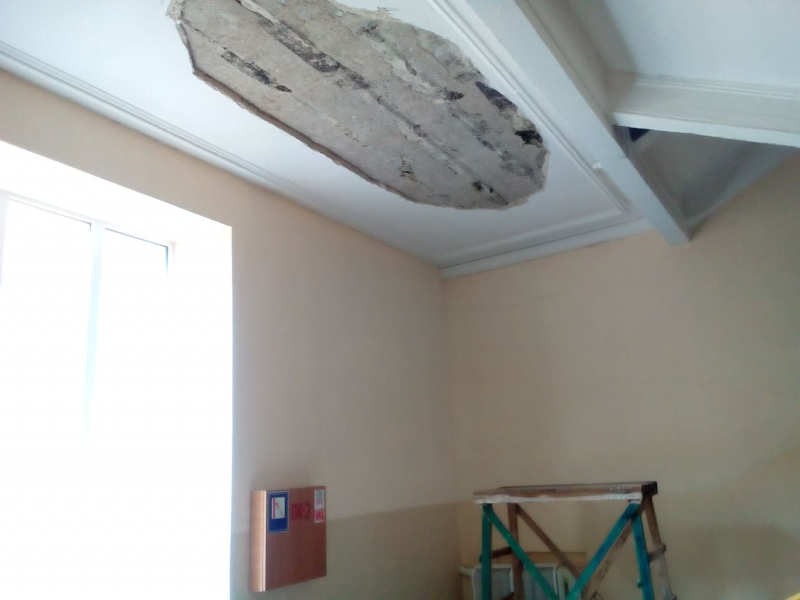 "Сейчас все последствия ликвидированы. Оставшийся слой штукатурки отбит, чтобы предотвратить новый обвал. Мы вызвали ремонтную бригаду. Завтра специалисты установят причину обвала и устранят. Но видимых причин для обвала отделочного слоя потолка не было: в этом месте нет ни подтеков, ни трещин", - рассказала замдиректора по учебно-воспитательной работе.