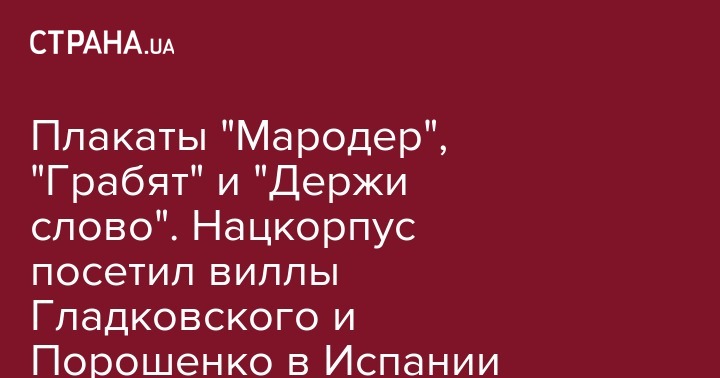Плакаты "Мародер", "Грабят" и "Держи слово". Нацкорпус посетил виллы Гладковского и Порошенко в Испании